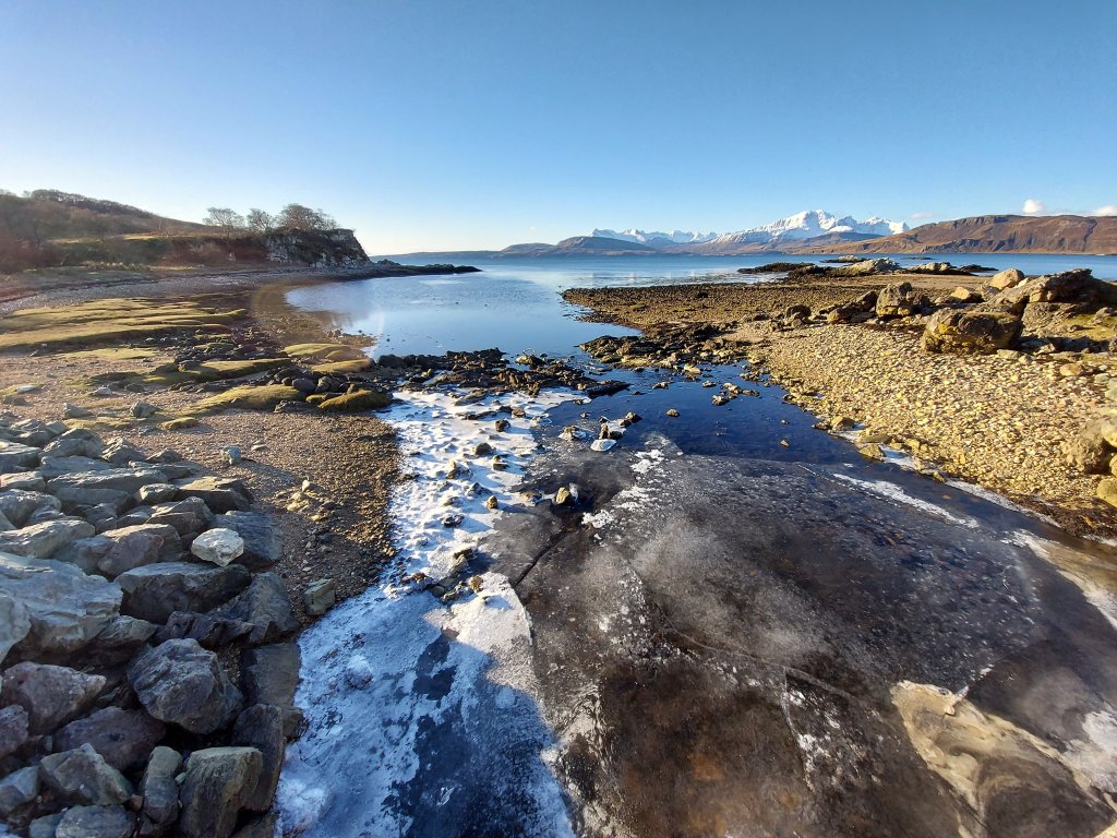 As I look out on a perfect winter’s day I’m slightly dizzy with the rugged beauty that surrounds me. In the clear blue sky above me, with not a single jet trail to spoil the blanket of azure. A crisp, still morning with nothing but the sound of my crunching footsteps in the icy grass below me, I welcome the fantastic panorama of the textured rocks and icy water. In this blissful, restful silence, who could not sense God’s presence?